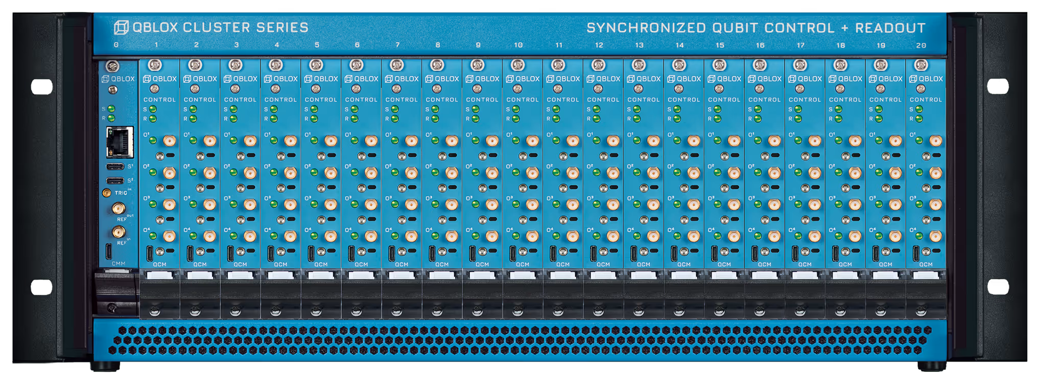 The Qubit Control Module (QCM) is engineered for high-performance arbitrary waveform generation at 1 GS/s, combining pulse parametrization and numerical modulation up to 400 MHz in the baseband regime. Driven by on-board sequence processors, the module enables direct digital synthesis of complex pulse sequences, delivering deterministic timing, low latency, high signal quality, fast reconfiguration, and scalability far beyond conventional AWGs.
